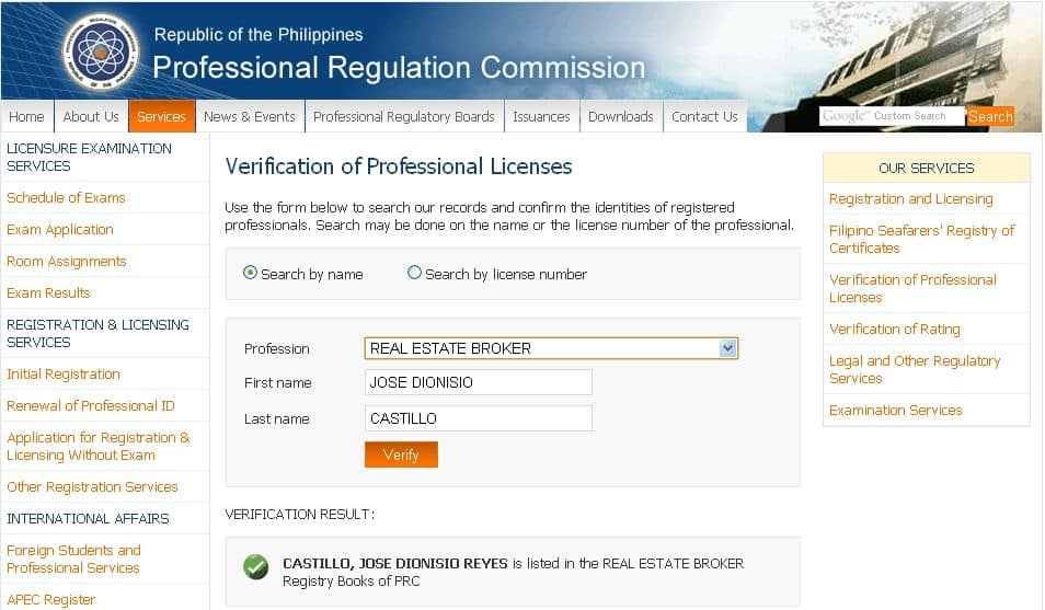 To verify that I am a PRC licensed real estate broker, you may use the following procedure: