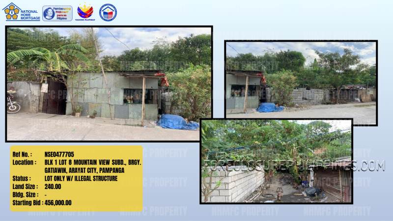 - Property Location: BLK 1 LOT 8 MOUNTAIN VIEW SUBD., BRGY. GATIAWIN, ARAYAT CITY, PAMPANGA