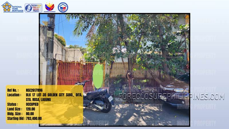 - Property Location: BLK 17 LOT 35 GOLDEN CITY SUBD., DITA, STA. ROSA, LAGUNA