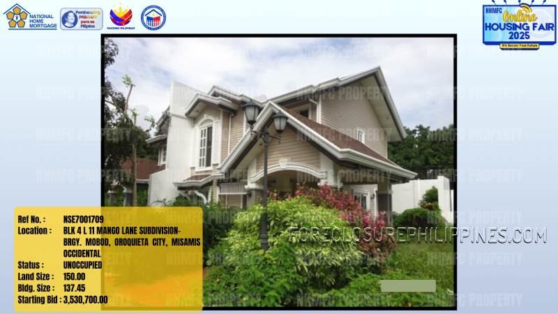 - Property Location: BLK 4 L 11 MANGO LANE SUBDIVISION-BRGY. MOBOD, OROQUIETA CITY, MISAMIS OCCIDENTAL