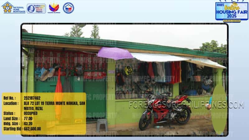 This property from the 2025 Online Housing Fair of the National Home Mortgage Finance Corporation or NHMFC. The bidding period is from September 23, 2025 to October 22, 2025. More details below.