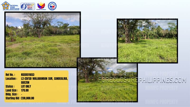 - Property Location: L2-C5F3D MALABANBAN SUR, CANDEALRIA, QUEZON