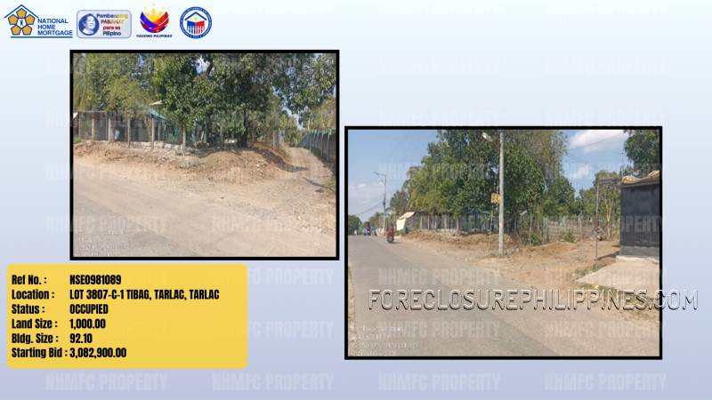 - Property Location: LOT 3807-C-1 TIBAG, TARLAC, TARLAC
