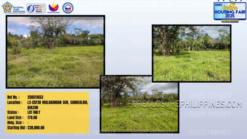 - Property Location: L2-C5F3D MALABANBAN SUR, CANDEALRIA, QUEZON