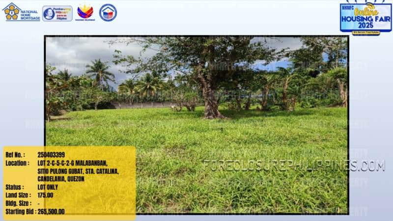 - Property Location: LOT 2-C-5-C-2-G MALABANBAN, SITIO PULONG GUBAT, STA. CATALINA, CANDELARIA, QUEZON