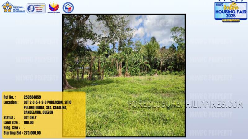 - Property Location: LOT 2-C-5-F-2-D POBLACION, SITIO PULONG GUBAT, STA. CATALINA, CANDELARIA, QUEZON