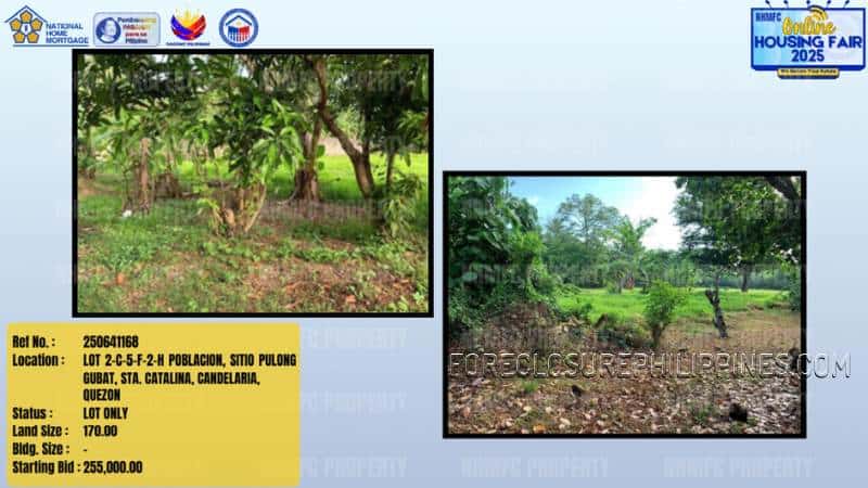 - Property Location: LOT 2-C-5-F-2-H POBLACION, SITIO PULONG GUBAT, STA. CATALINA, CANDELARIA, QUEZON