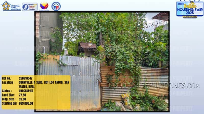- Property Location: SUNNYVILLE 4 SUBD. B01 L04 AMPID, SAN MATEO, RIZAL