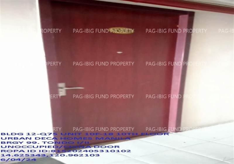 - Property Location (address): Unit 10F-18 10TH Flr. 12-Q75 URBAN DECA HOMES MANILA BARANGAY 94, TONDO I/II, NCR, CITY OF MANILA, FIRST DISTRICT, 1012