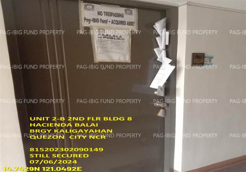 - Property Location (address): Unit 2-B 2ND Flr. 8 HACIENDA BALAI KALIGAYAHAN, QUEZON CITY, NCR, SECOND DISTRICT, 1124