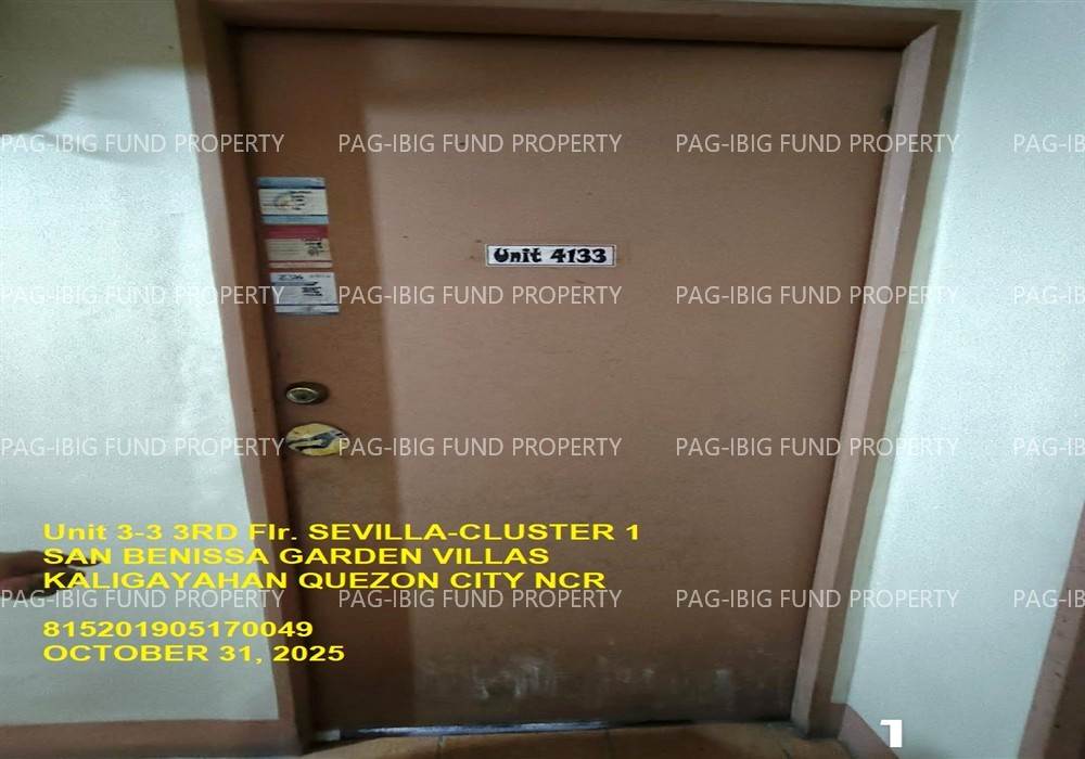 - Property Location (address): Unit 3-3 3RD Flr. SEVILLA-CLUSTER 1 SAN BENISSA GARDEN VILLAS KALIGAYAHAN, QUEZON CITY, NCR, SECOND DISTRICT, 1124