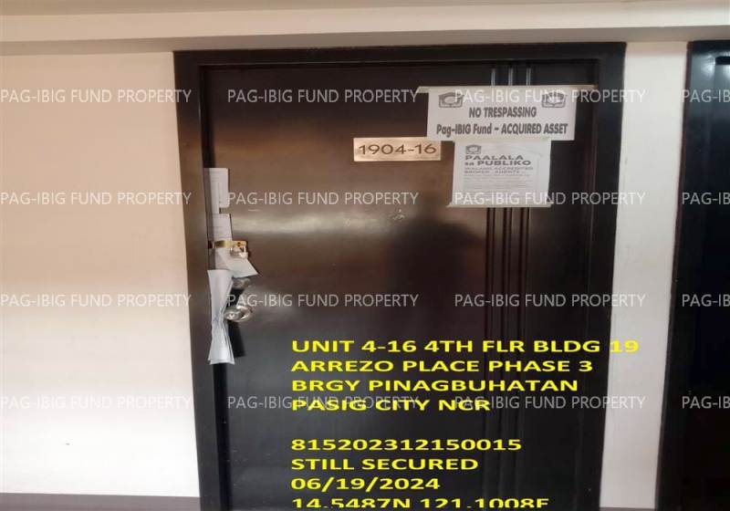 - Property Location (address): Unit 4-16 4TH Flr. 19 AREZZO PLACE PHASE 3 PINAGBUHATAN, CITY OF PASIG, NCR, SECOND DISTRICT, 1602