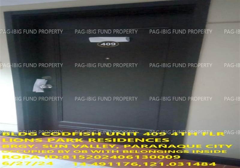 - Property Location (address): Unit 409 4TH Flr. CODFISH LIONS PARK RESIDENCES SUN VALLEY, CITY OF PARANAQUE, NCR, FOURTH DISTRICT, 1700