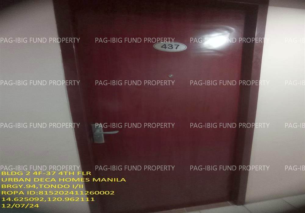 - Property Location (address): Unit 4F-37 4TH Flr. 2-Q75 URBAN DECA HOMES MANILA BARANGAY 94, TONDO I/II, NCR, CITY OF MANILA, FIRST DISTRICT, 1012