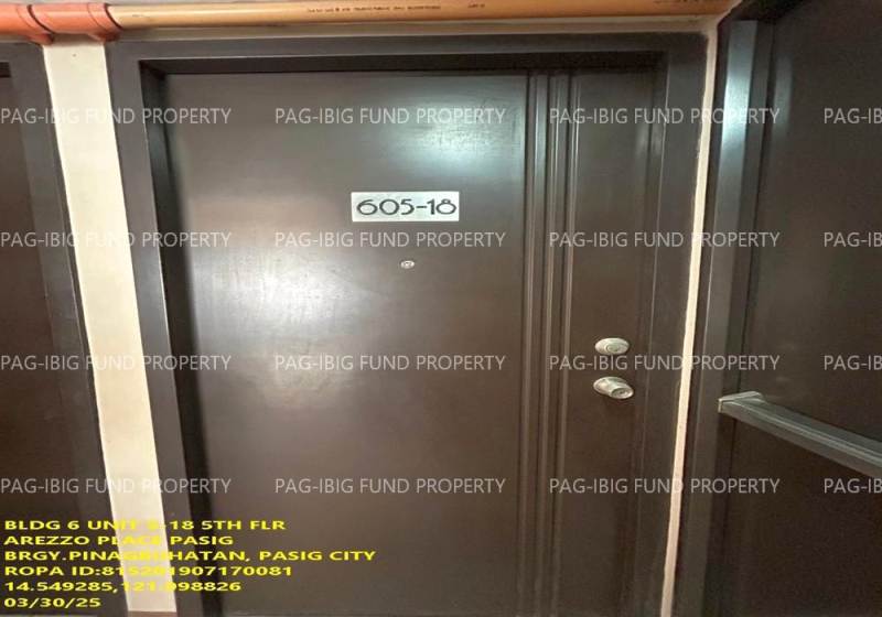 - Property Location (address): Unit 5-18 5TH Flr. 6 AREZZO PLACE PHASE 1 PINAGBUHATAN, CITY OF PASIG, NCR, SECOND DISTRICT, 1602