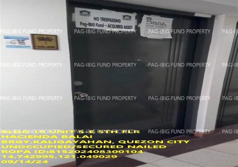 - Property Location (address): Unit 5-E 5TH Flr. 10 HACIENDA BALAI KALIGAYAHAN, QUEZON CITY, NCR, SECOND DISTRICT, 1124