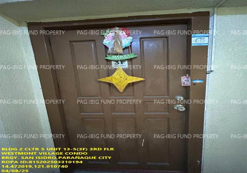 - Property Location (address): Unit B2-5-3-13- 3RD Flr. 2 CLUSTER 5 WESTMONT VILLAGE CONDO SAN ISIDRO, CITY OF PARANAQUE, NCR, FOURTH DISTRICT, 1700