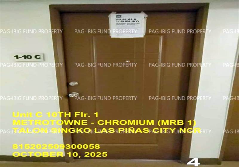 - Property Location (address): Unit C 10TH Flr. 1 METROTOWNE – CHROMIUM (MRB 1) TALON SINGKO, CITY OF LAS PINAS, NCR, FOURTH DISTRICT, 1747