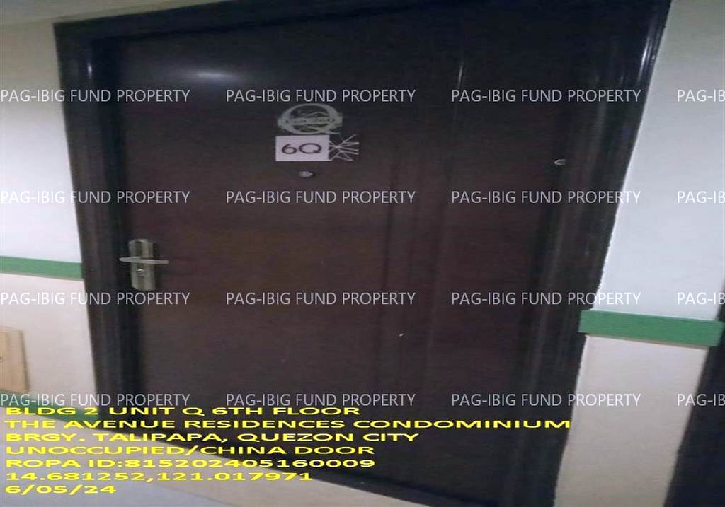 - Property Location (address): Unit Q 6TH Flr. 2 THE AVENUE RESIDENCES CONDOMINIUM TALIPAPA, QUEZON CITY, NCR, SECOND DISTRICT, 1116