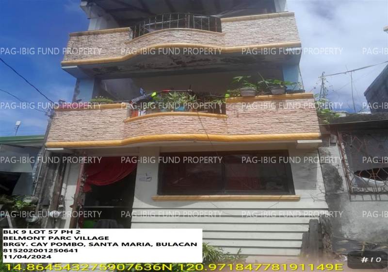 - Property Location (address): Lot 57 OF LOTS Blk. 9 Phase 2 BELMONT PARC VILLAGE CAY POMBO, SANTA MARIA, BULACAN, 3022