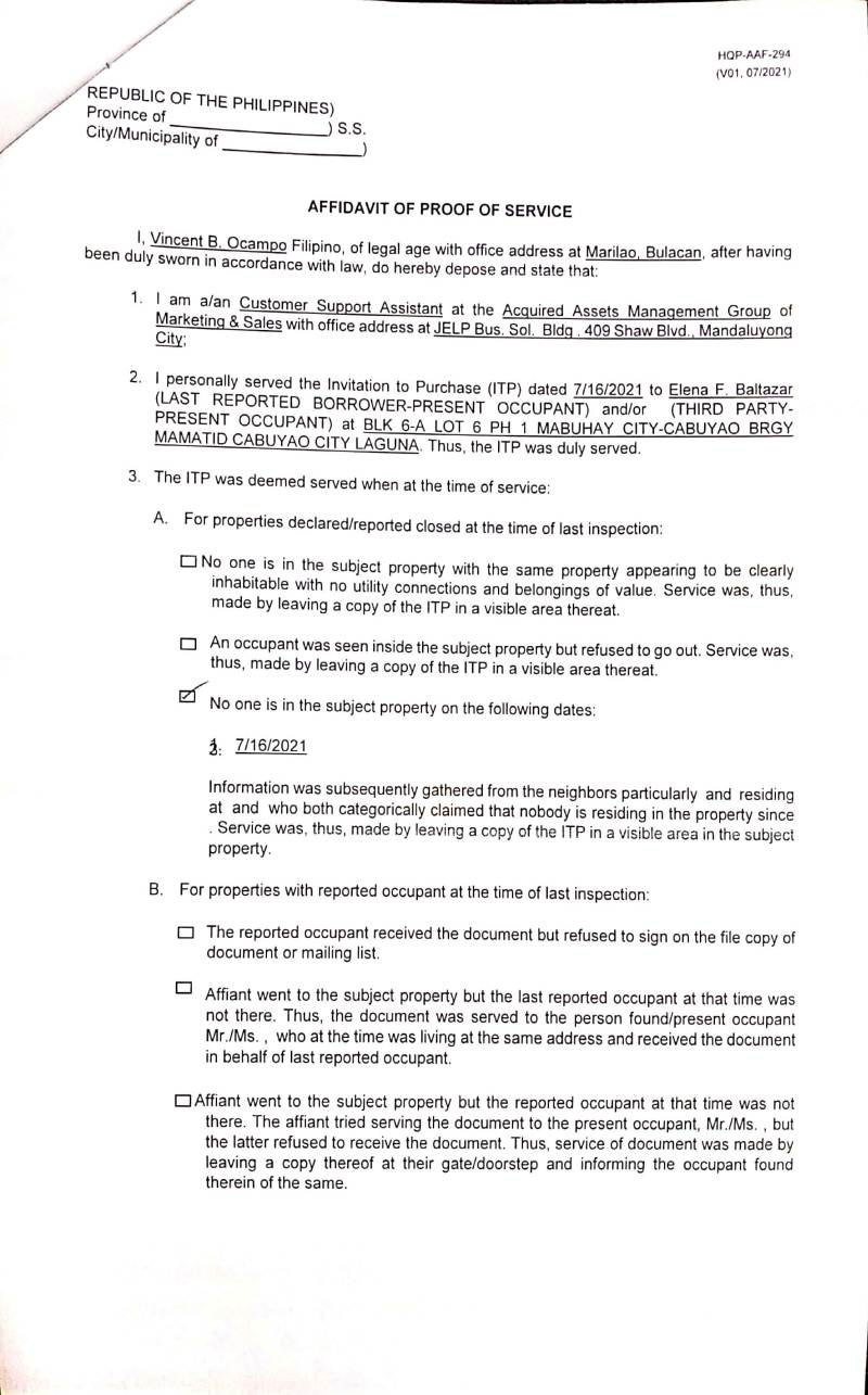 - Property Location (address): Lot 6 Blk. 6-A Phase 1 MABUHAY CITY-CABUYAO BACLARAN, CITY OF CABUYAO, LAGUNA, 4025