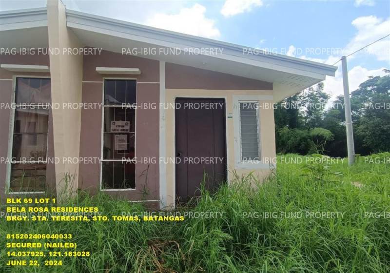 - Property Location (address): Lot 1 Blk. 69 BELA ROSA RESIDENCES SANTA TERESITA, CITY OF STO. TOMAS, BATANGAS, 4234