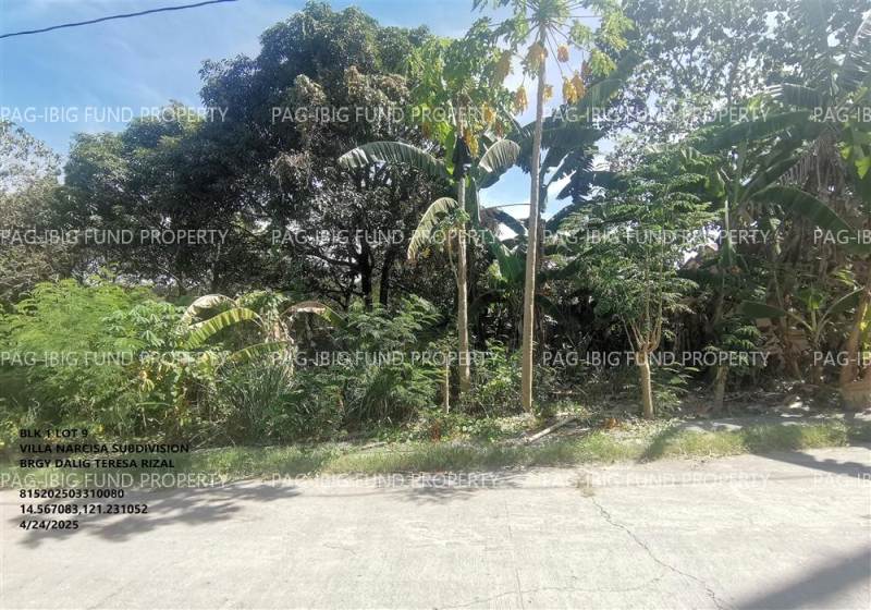 - Property Location (address): Lot 9 Blk. 1 VILLA NARCISA SUBDIVISION DALIG, TERESA, RIZAL, 1880
