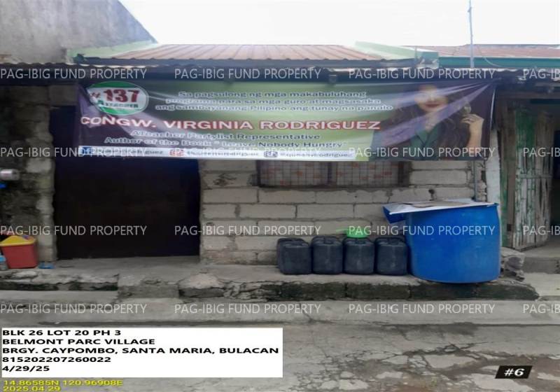 - Property Location (address): Lot 20 Blk. 26 Phase 3 BELMONT PARC VILLAGE CAY POMBO, SANTA MARIA, BULACAN, 3022