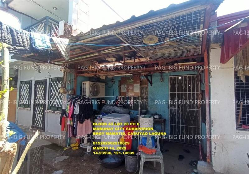 - Property Location (address): Lot 20 Blk. 43 Phase 6 MABUHAY CITY-CABUYAO MAMATID, CITY OF CABUYAO, LAGUNA, 4025