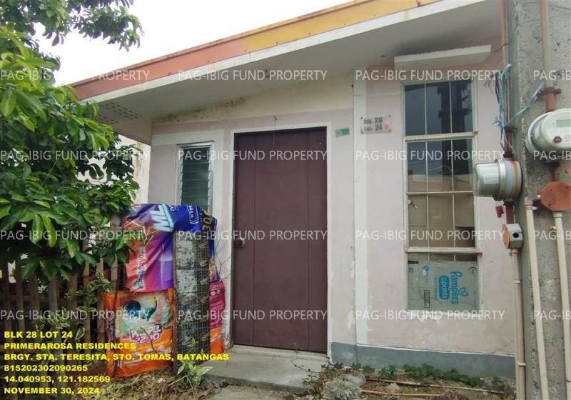 - Property Location (address): Lot 24 Blk. 28 PRIMERAROSA RESIDENCES SANTA TERESITA, CITY OF STO. TOMAS, BATANGAS, 4234