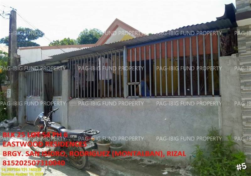 - Property Location (address): Lot 54 Blk. 25 Phase 6 EASTWOOD RESIDENCES SAN ISIDRO, RODRIGUEZ, RIZAL, 1860
