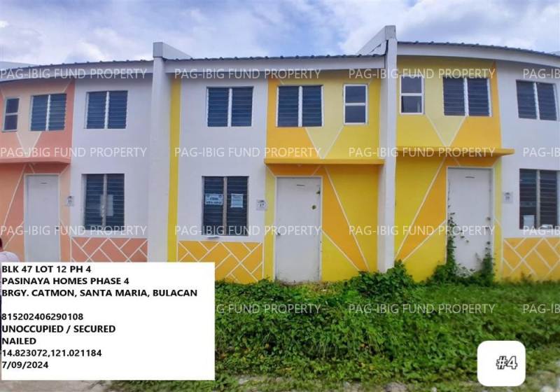- Property Location (address): Lot 12 Blk. 47 Phase 4 PASINAYA HOMES PHASE 4 – SOCIALIZED CATMON, SANTA MARIA, BULACAN, 3022