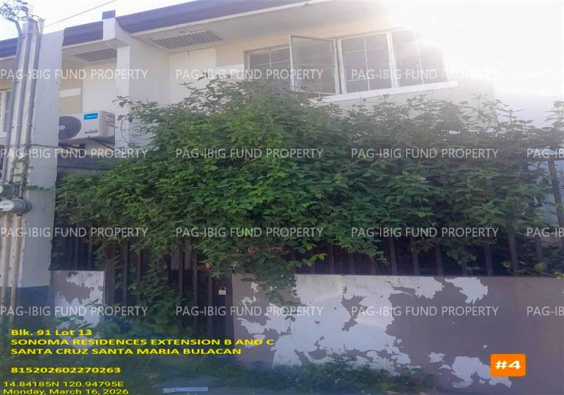 - Property Location (address): Lot 13 Blk. 91 SONOMA RESIDENCES EXTENSION B AND C SANTA CRUZ, SANTA MARIA, BULACAN, 3022
