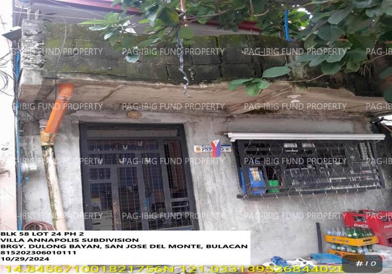 - Property Location (address): Lot 24 Blk. 58 VILLA ANNAPOLIS SUBD PHASE 2 DULONG BAYAN, CITY OF SAN JOSE DEL MONTE, BULACAN, 3023