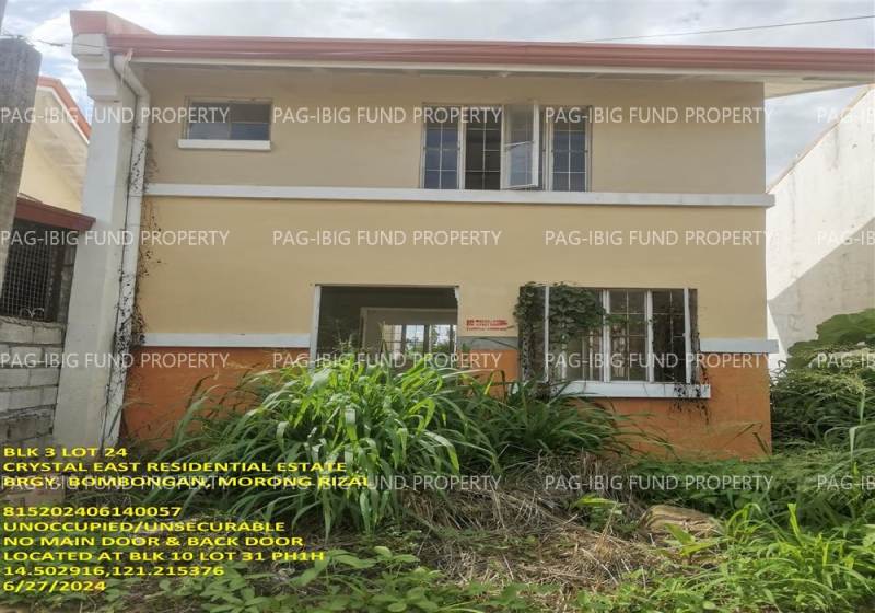 - Property Location (address): Lot 24 (31) Blk. 3 (10) Phase 1H CRYSTAL EAST RESIDENTIAL ESTATE & COUNTRY PHASE 1H BOMBONGAN, MORONG, RIZAL, 1960