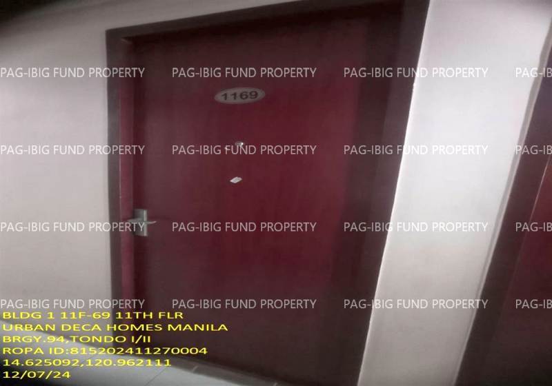 - Property Location (address): Unit 11F-69 11TH Flr. 1-Q75 URBAN DECA HOMES MANILA BARANGAY 94, TONDO I/II, NCR, CITY OF MANILA, FIRST DISTRICT, 1012