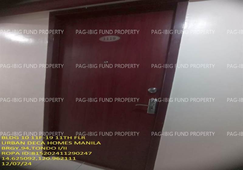 - Property Location (address): Unit 11F-19 11TH Flr. 10-Q75 URBAN DECA HOMES MANILA BARANGAY 94, TONDO I/II, NCR, CITY OF MANILA, FIRST DISTRICT, 1012