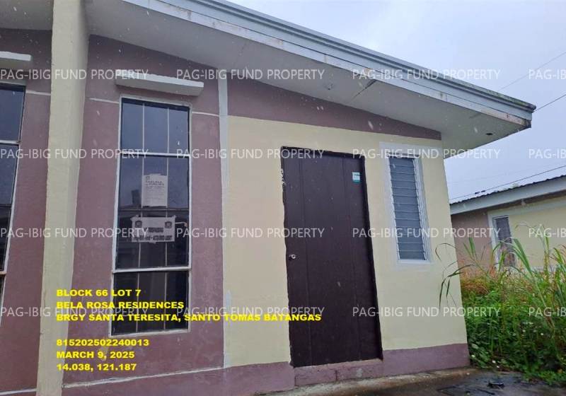 - Property Location (address): Lot 7 Blk. 66 BELA ROSA RESIDENCES SANTA TERESITA, CITY OF STO. TOMAS, BATANGAS, 4234