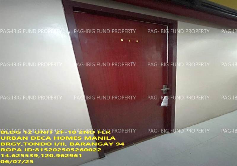 - Property Location (address): Unit 2F-10 2ND Flr. 12-Q75 URBAN DECA HOMES MANILA BARANGAY 94, TONDO I/II, NCR, CITY OF MANILA, FIRST DISTRICT, 1012