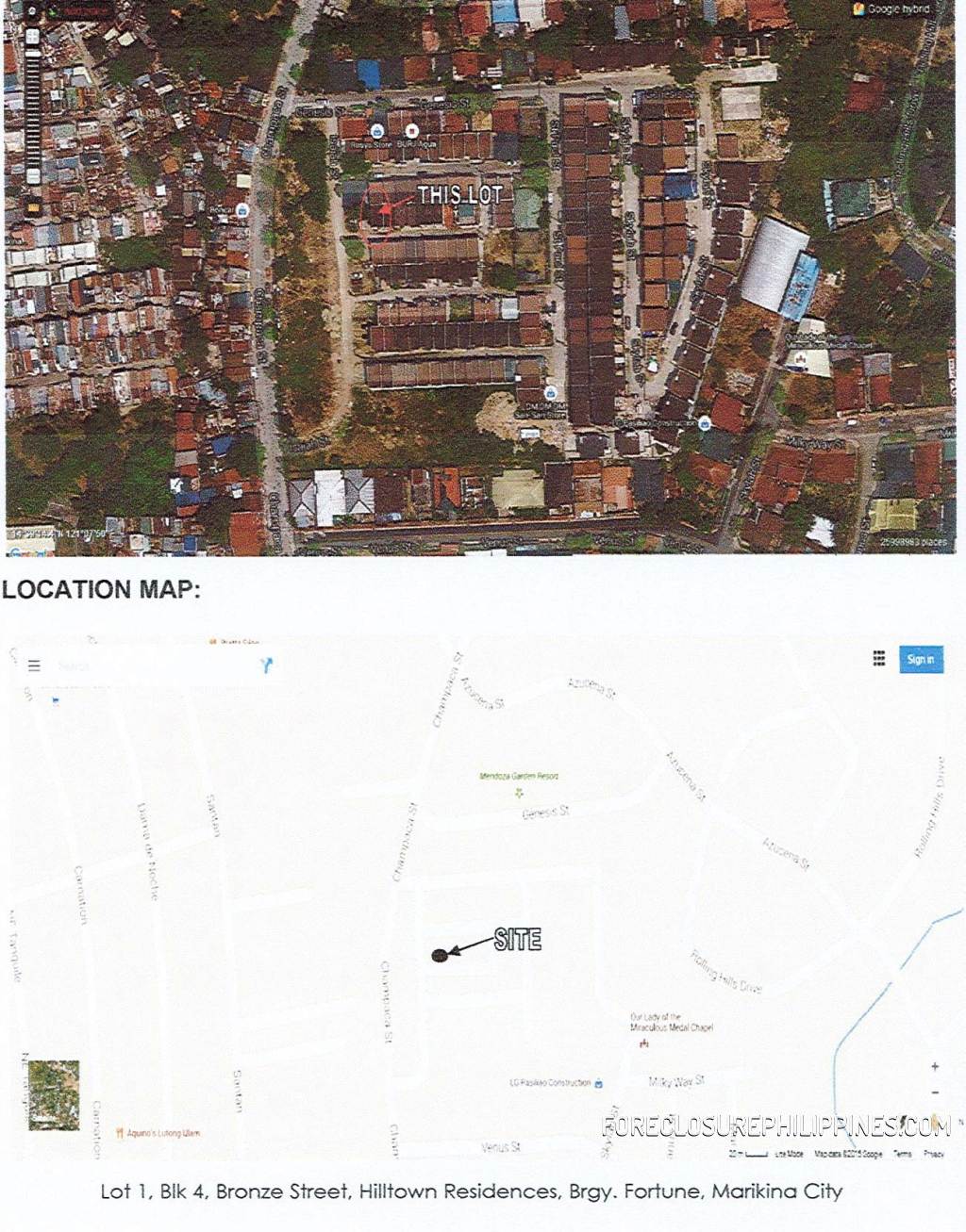 - Location: Lot 1 Bronze Street, Hilltown Residences, Barangay Fortune, Marikina, NCR, 2nd District
