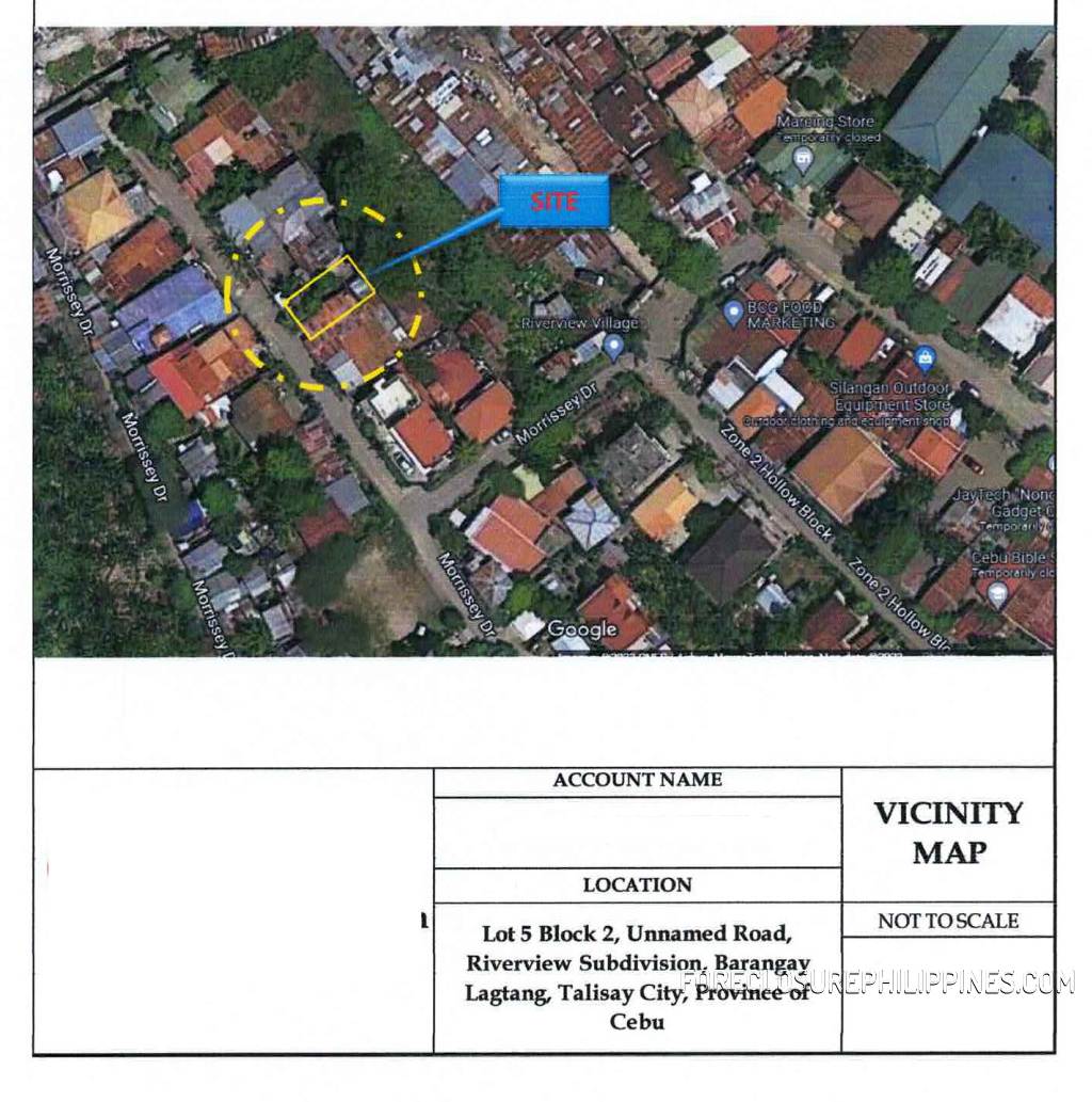 - Location: Lot 5 Blk 2 Riverview Subivision, Barangay Lagtang, Talisay, Cebu Talisay, Cebu