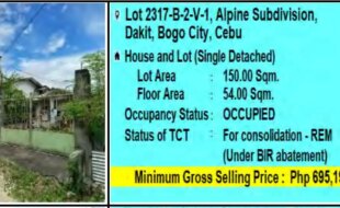 Note: The list below only includes foreclosed properties in Bogo, Cebu. Search or filter this list using the search tool below. CLICK HERE TO VIEW ALL LOCATIONS