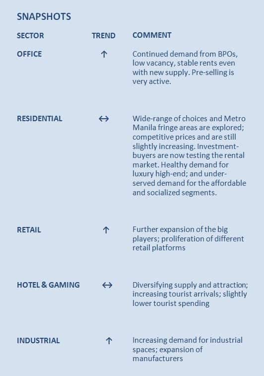 After more than a decade of economic growth and several years of real estate boom, everyone is anticipating the positive political climate to sustain this growth. While growth may not be phenomenal due to higher base, stable growth is more than welcome.Mr. Jojo Salas, Director - Research and Consulting