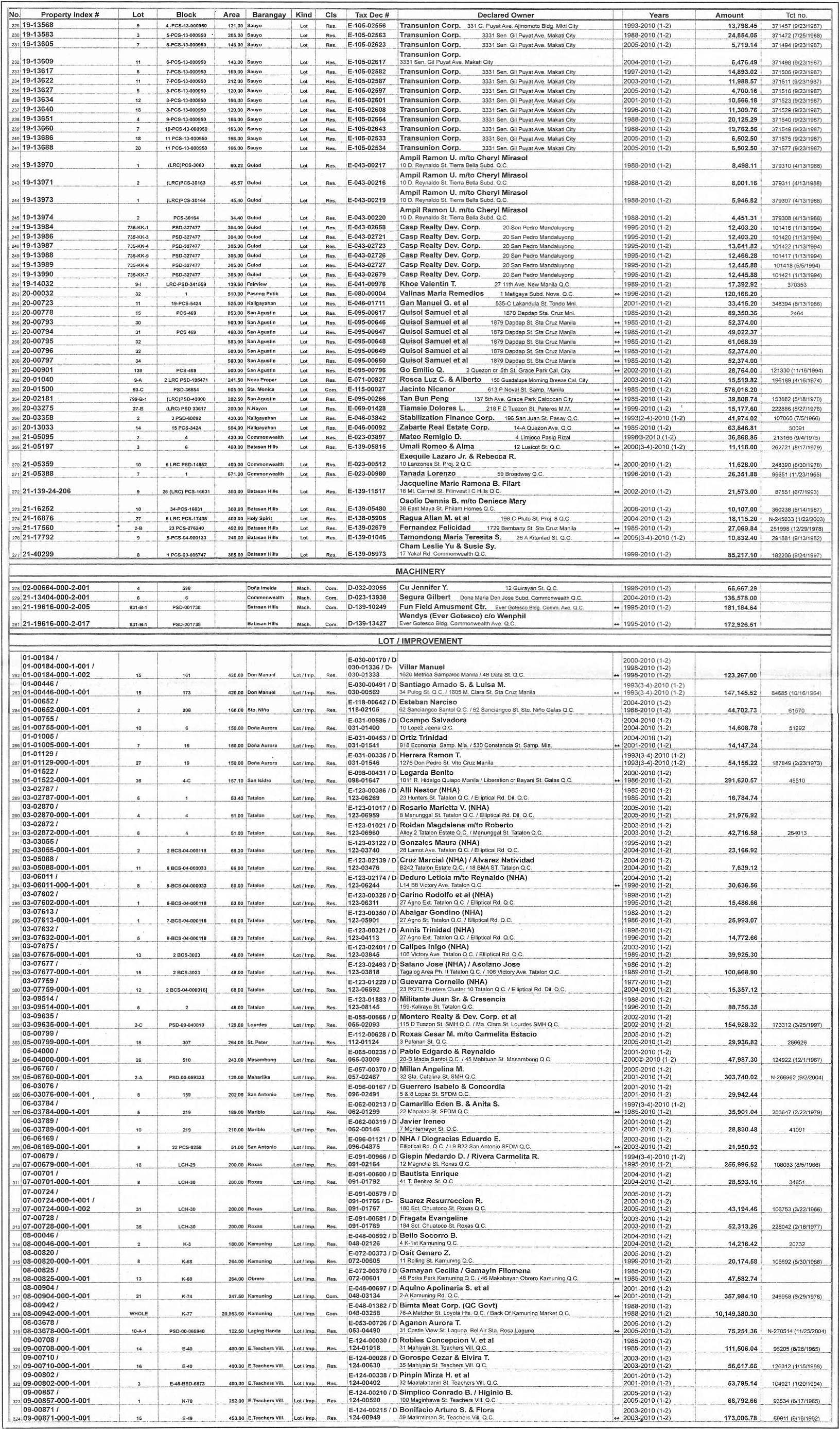 Pingback: Tweets that mention Complete list of Quezon City delinquent real property for public auction published
